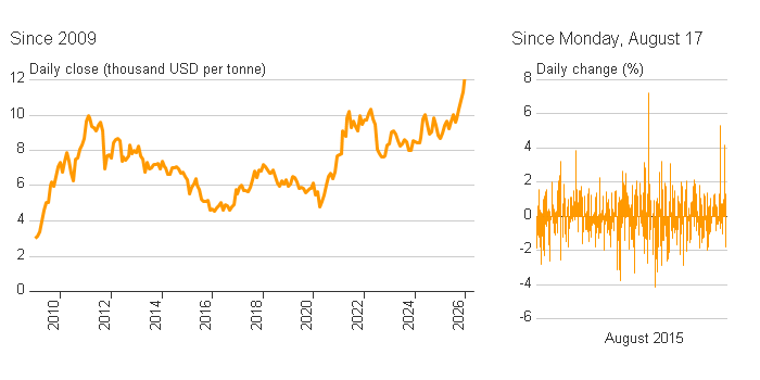 Copper, a barometer of global industrial demand, hit a six-year low.