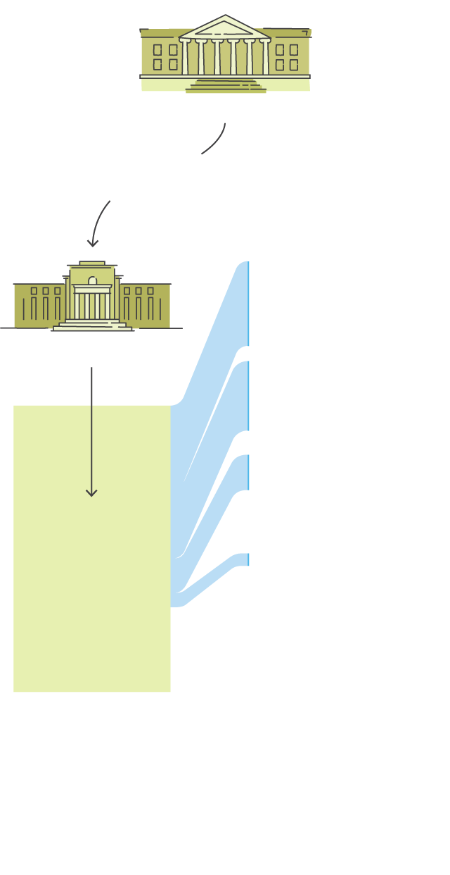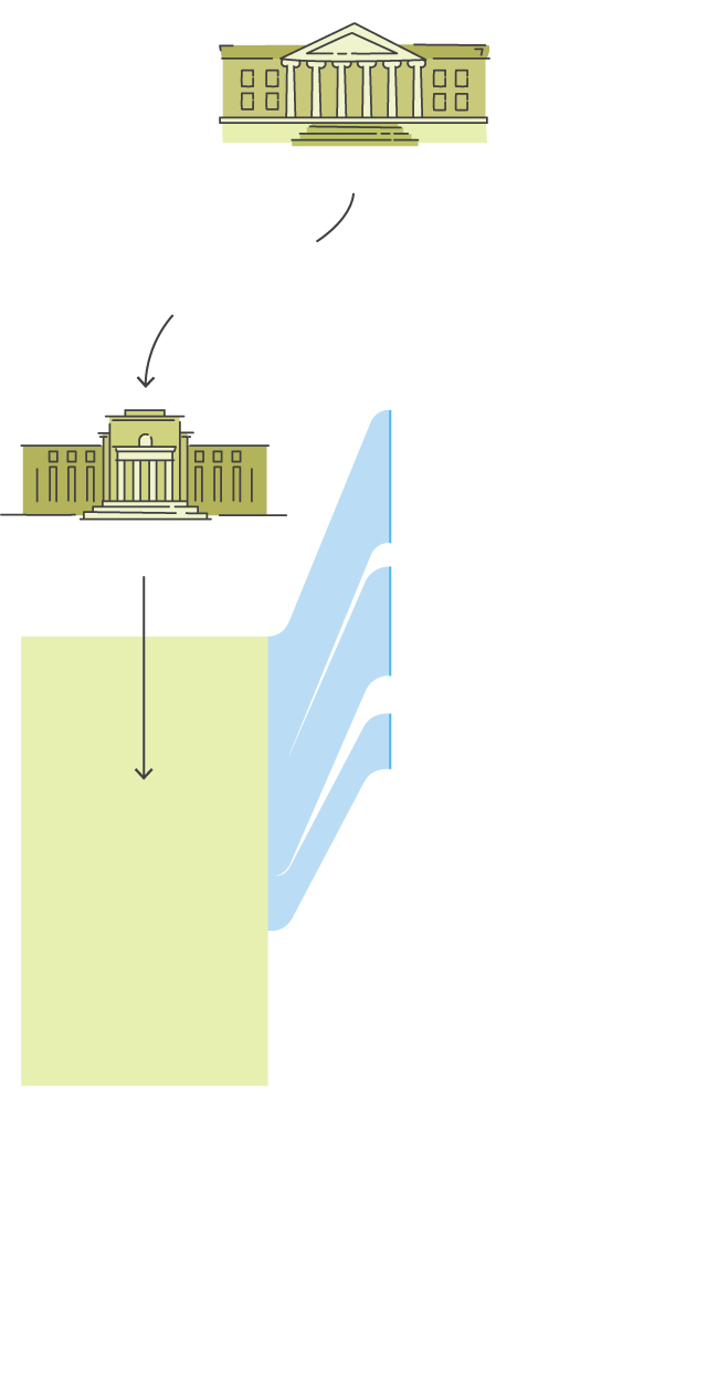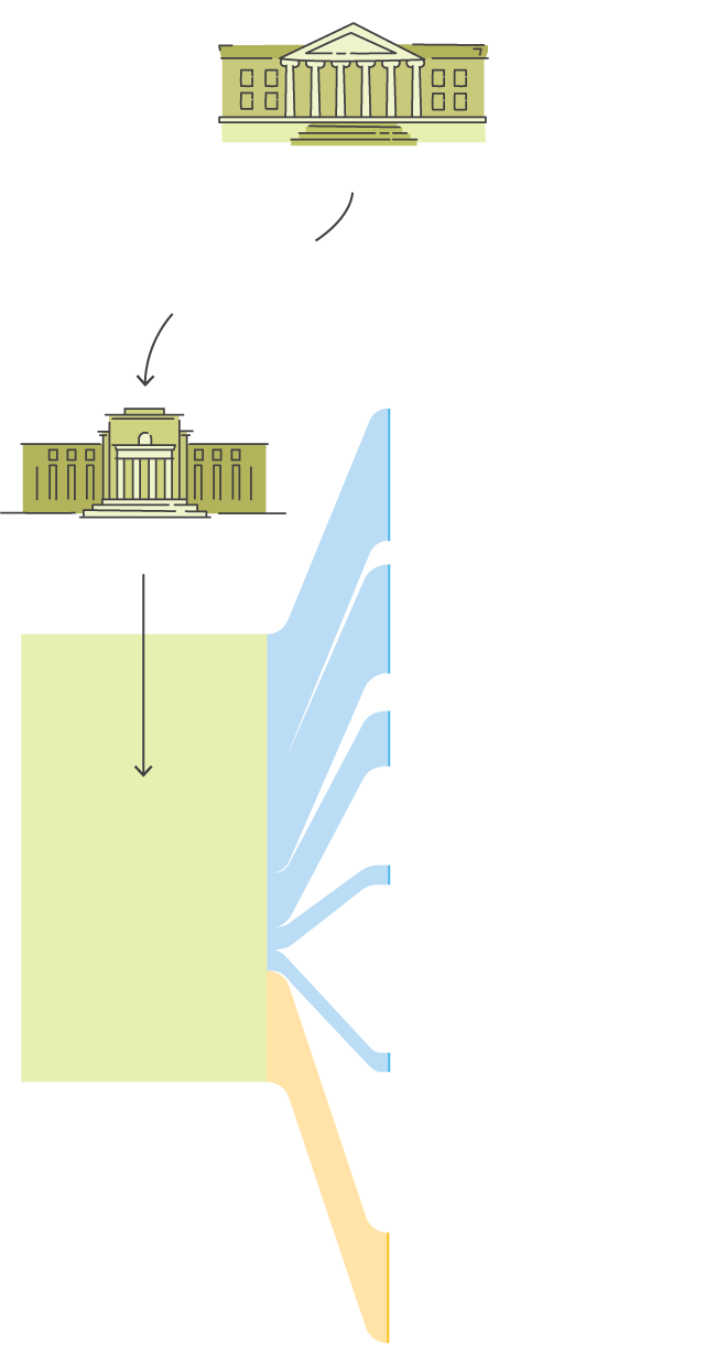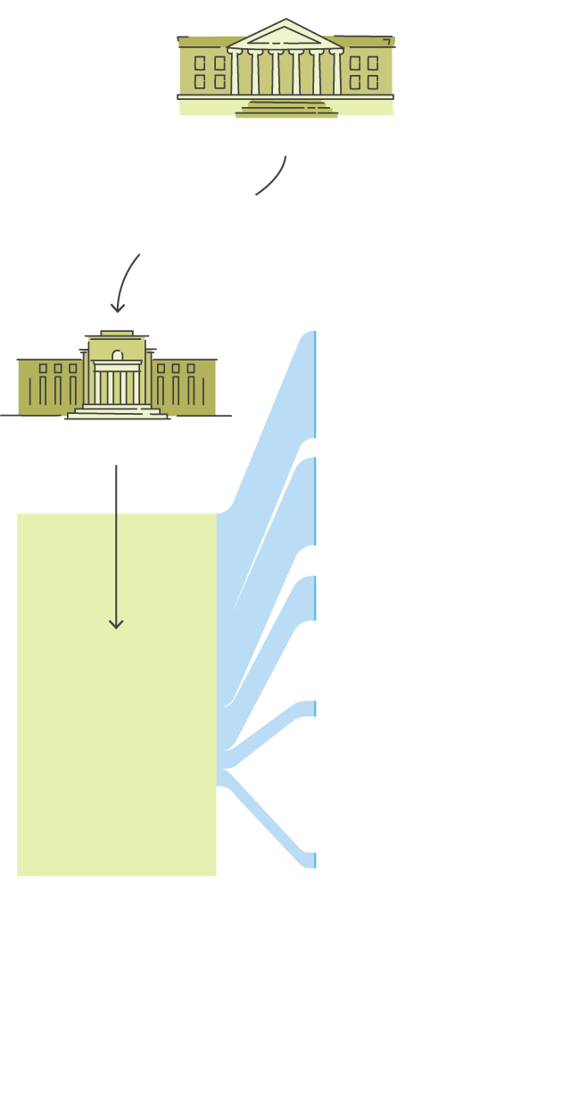 The Treasury, the agency that collects taxes and pays the government’s bills, is responsible for the programs that are putting cash directly into the pockets of people and companies. The Federal Reserve is the nation’s central bank and an independent entity responsible for overseeing its money supply and financial markets. Its crisis programs help ensure people and companies, including banks and financial firms, continue to borrow and lend to each other, sometimes making those loans itself.
